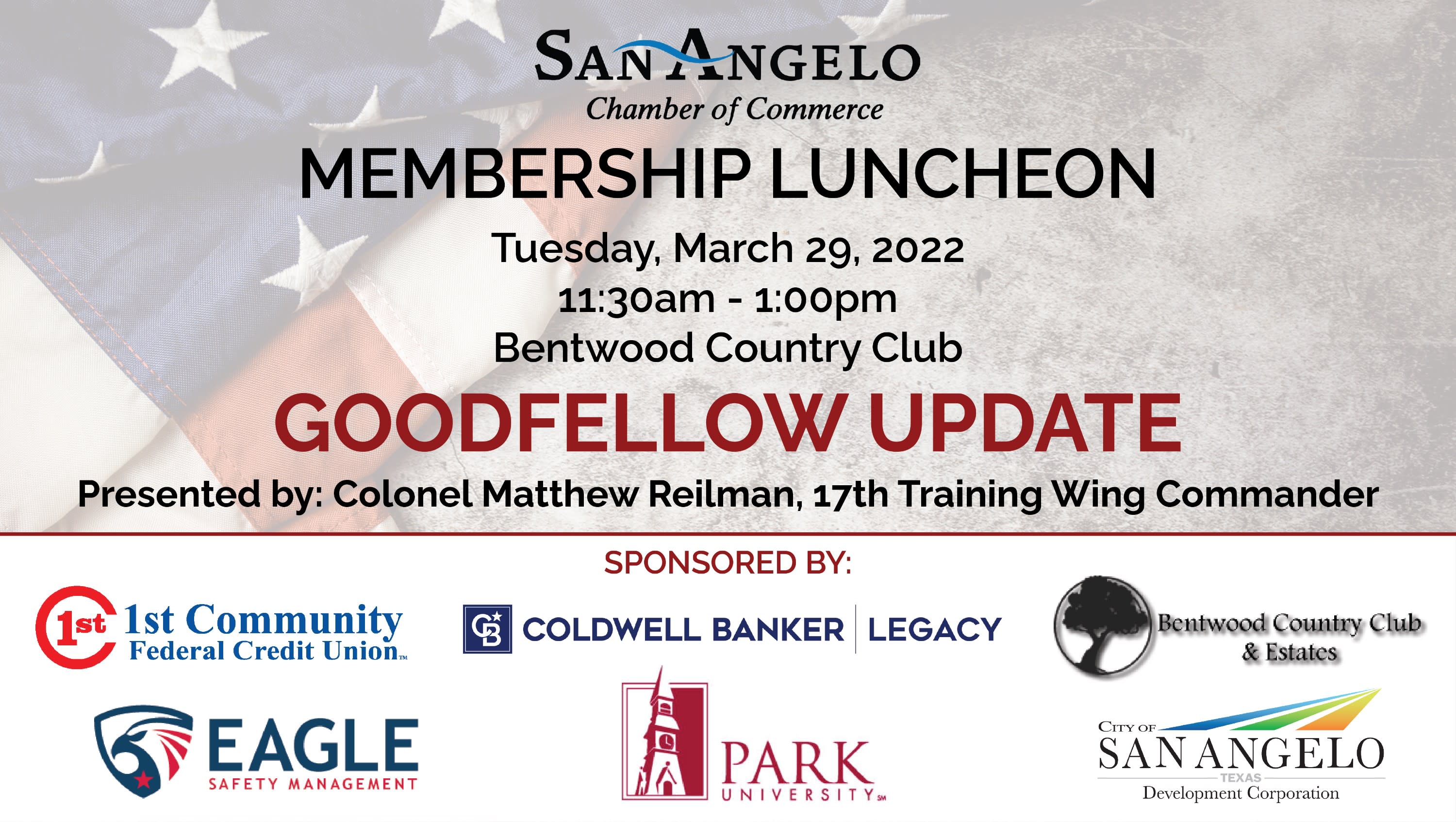 Be sure to purchase your tickets to attend our upcoming Membership Luncheon! Members: Early Bird Registration (open now through March 11 @ 12:00 pm): $20 Late Registration (open March 11 @ 12:01 pm through March 14 @ 12:00pm)